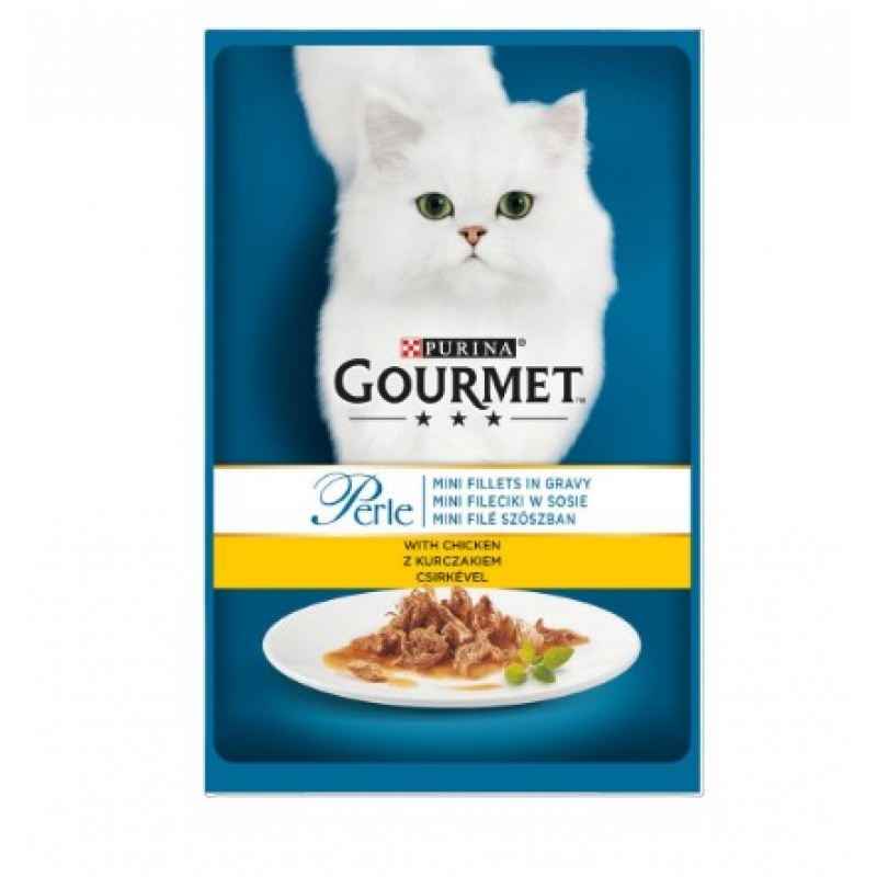 GOURMET Perle a creat Mini Fileuri in sos: bucati fine cu pui, taiate in mini fileuri si servite intr-un sos delicios pentru a incanta gustul rafinat al pisicii tale. Mini fileurile in sos de la GOURMET Perle, creatii simple si rafinate pentru o experienta de gust irezistibil in fiecare zi.