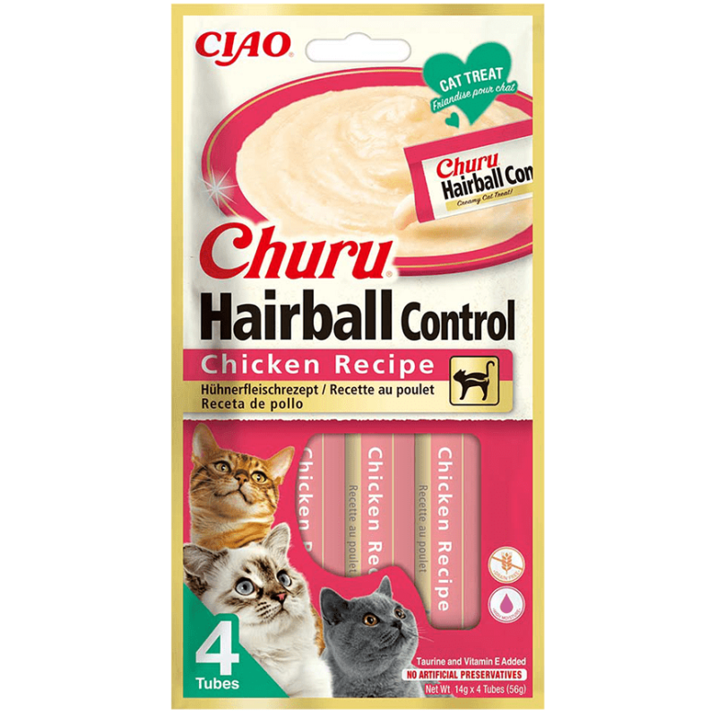 Churu Hairball Control este o nouă completare a celei mai bine vândute game de sosuri cunoscute pentru textura lor catifelată și conținutul ridicat de umiditate. Bogat în fibre vegetale insolubile și chitosan, ajută la menținerea unui tract digestiv sănătos și la combaterea formării bulgărilor de păr. De asemenea, conține turină, un aminoacid cheie esențial pentru pisici pentru buna funcționare a multor organe.