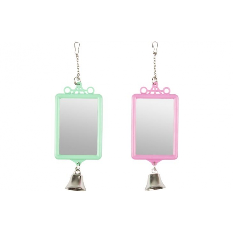 JUCARIE PAPAGALI OGLINDA DREPTUNGHIULARA CU CLOPOTEL 6X8CM 100290